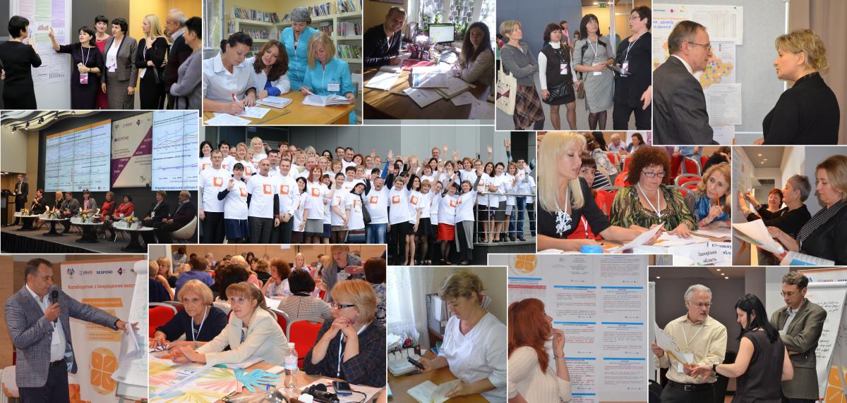 The quality improvement (QI) collaborative is a joint effort to improve the HIV services in a number of communities, health facilities and NGOs across eight regions in Ukraine with high and medium HIV burden. The improvement efforts spans along the full continuum of HIV services: from HIV testing to linkage to care, treatment and support. The focal points of the QI collaborative in each region are 155 local QI teams, from 5 in Kyiv City to 39 in Dnipropetrovsk and 48 in Odesa region. QI teams are organized around AIDS Centers and ART sites, which provide HIV testing and treatment services. Each local team is led by the ART site physician (QI coach) and comprised of the government primary healthcare and specialty practitioners (TB, STI, OB/GYN and narcology), non-government psychosocial service providers and PLHIV representatives.