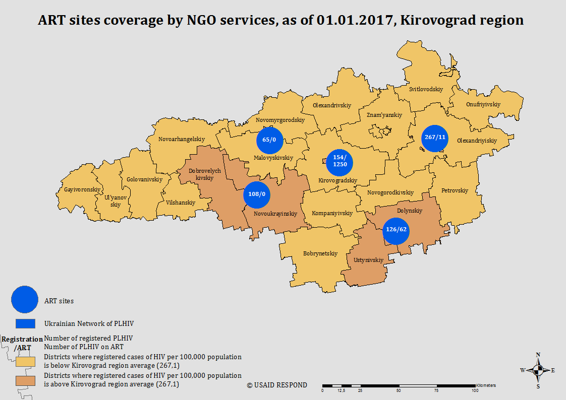 - Rapid HIV test kits purchased from local budget for the following ART sites: Central Rayon Hospital of the Novoukrainka district, PHC Center of the Novoukrainka district.