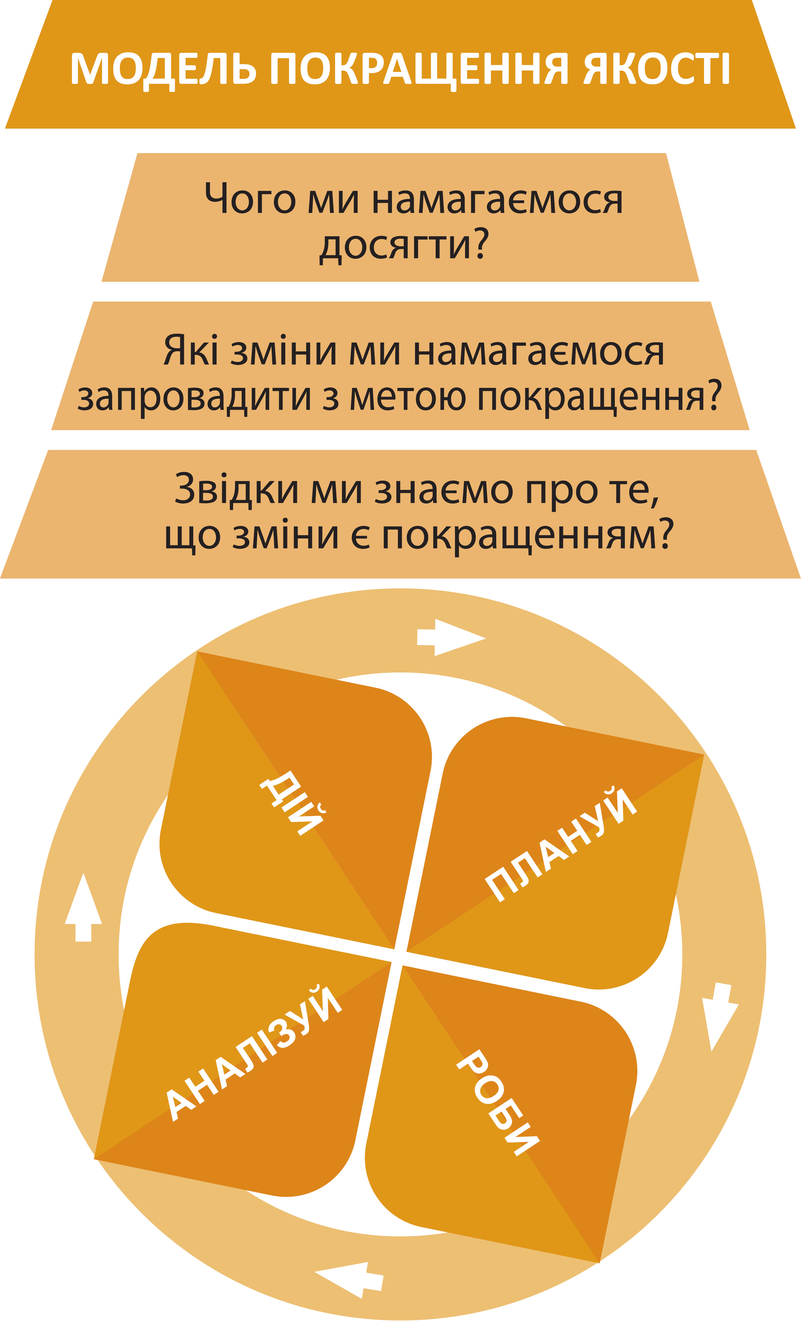Заходи колаборативу ґрунтуються на моделі покращення якості, метою якої є приведення ВІЛ-послуг до певного набору стандартів (зокрема, «90–90–90») при задоволенні очікувань пацієнтів. Модель покращення якості передбачає декілька етапів: (1) аналіз проблеми для визначення цілей та завдань; (2) розробка системи МіО для вимірювання покращень; (3) розробка окремих змін чи пакетів змін; та (4) впровадження й вимірювання змін упродовж безперервного циклу «плануй–роби–аналізуй–дій» (ПРАД). Співпраця та обмін знаннями між місцевими та регіональними групами з покращення якості, які реалізують цикл ПРАД, забезпечуються в рамках щоквартальних регіональних чи міжрегіональних навчальних семінарів.