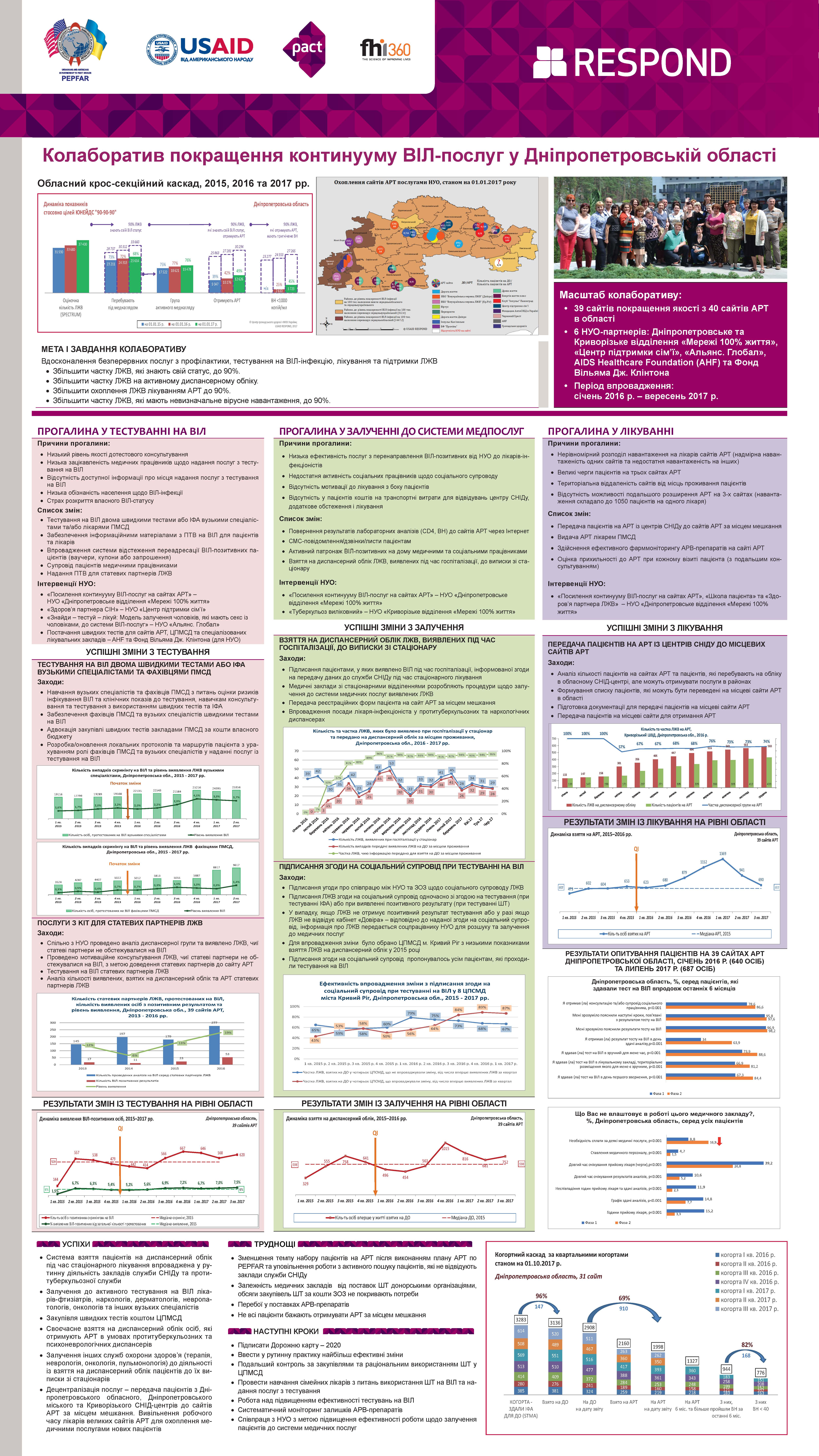 З метою вдосконалення безперервних послуг з профілактики, тестування на ВІЛ-інфекцію, лікування та підтримки ЛЖВ, з вересня 2015 року у Дніпропетровській області впроваджується спільний проект (колаборатив) з покращення якості.