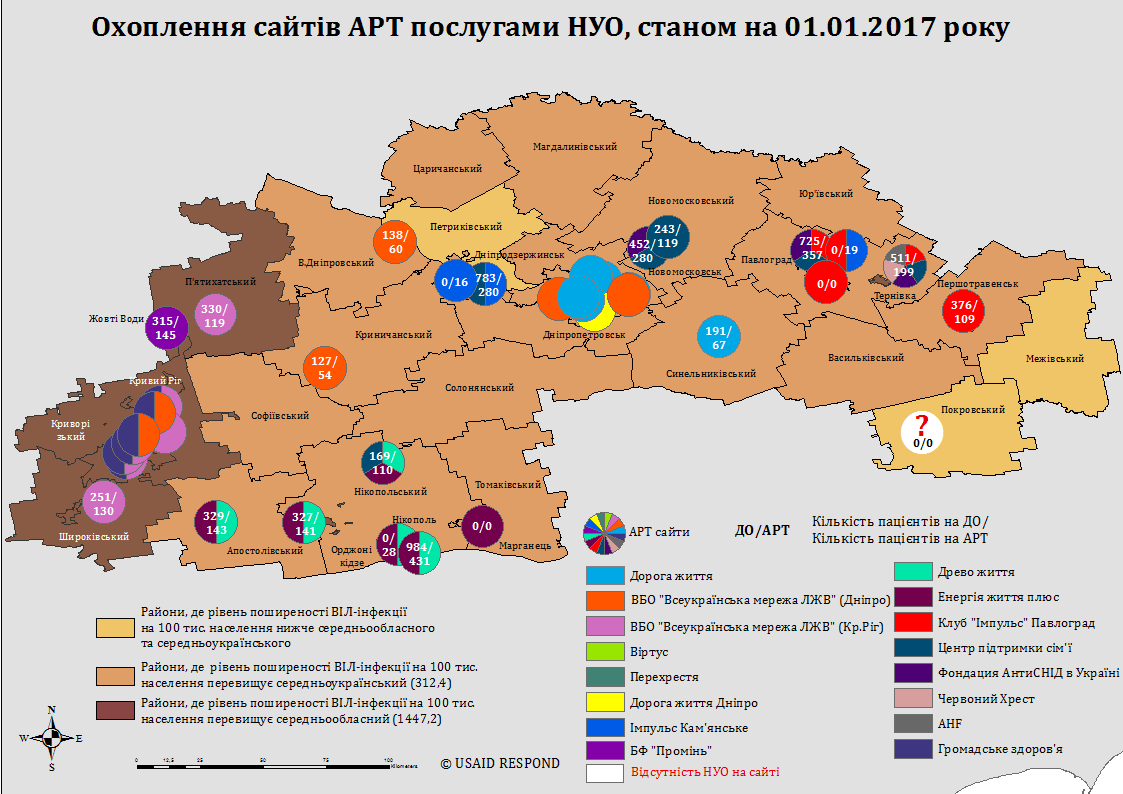 - Децентралізація послуг – передача пацієнтів з Дніпропетровського обласного, Дніпропетровського міського та Криворізького СНІД-центрів на районні сайти АРТ за місцем проживання. Вивільнення робочого часу лікарів великих сайтів для набору нових пацієнтів.