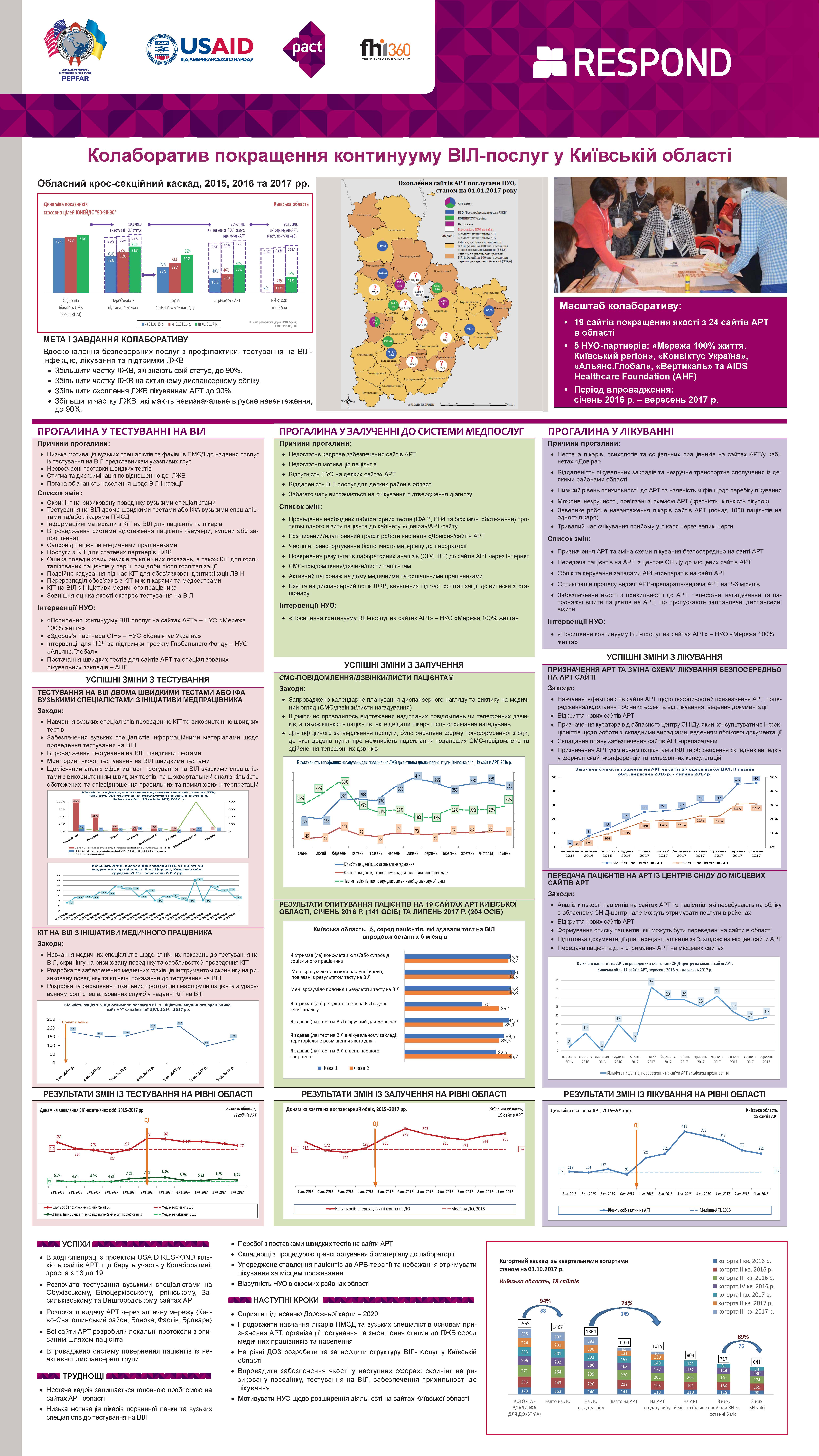 З метою вдосконалення безперервних послуг з профілактики, тестування на ВІЛ-інфекцію, лікування та підтримки ЛЖВ, з червня 2015 року у Київській області впроваджується спільний проект (колаборатив) з покращення якості.