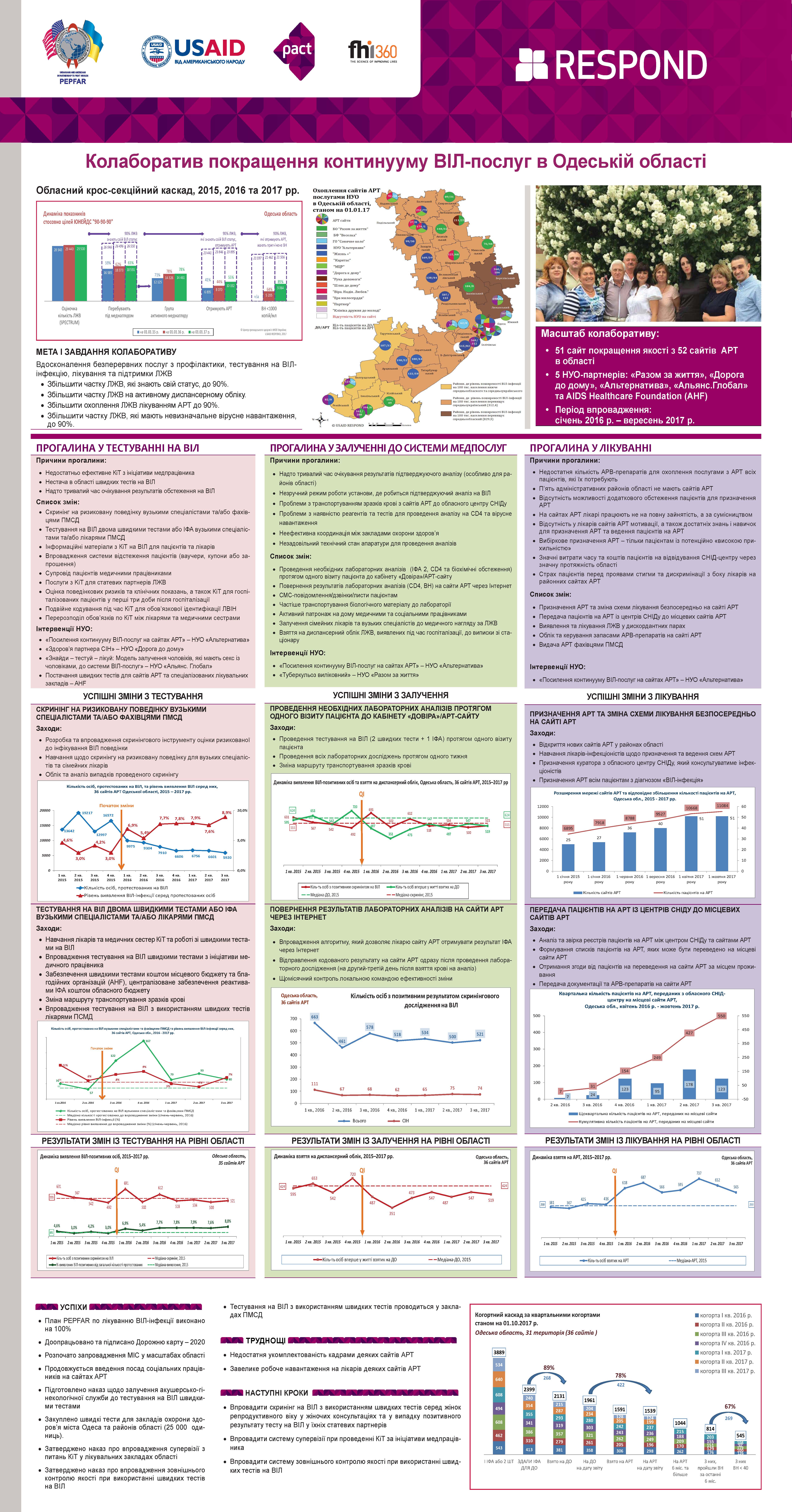 - Сталість розробленої та впровадженої моделі покращення якості допомоги ЛЖВ в Одеській області після закінчення проекту USAID RESPOND.