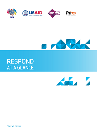 In October 2015, RESPOND pivoted to PEPFAR 3.0 and the UNAIDS’ Fast Track Strategy to reach the 90-90-90 targets within its technical assistance mandate: 90% of the estimated number of people living with HIV (PLHIV) should know their HIV status; 90% of PLHIV who know their status should be on anti-retroviral treatment (ART); and in 90% of those on ART the treatment should be effective and result in undetectable viral load.